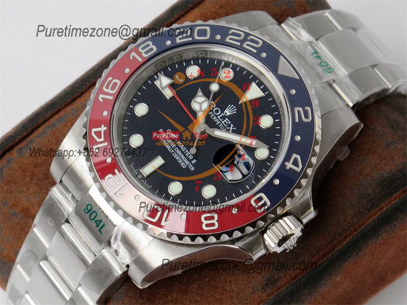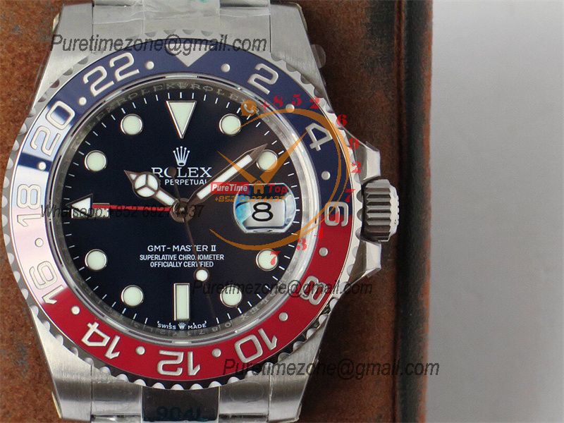 Home Rolex GMT-Master II GMT Master II 126710 Pepsi VR3186 Automatic Mens Watch Best Edition GSF Red/Blue Ceramic Black Dial 904L Oyster Bracelet