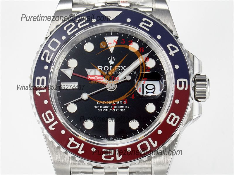 GMT Master II 126710 Pepsi VR3186 Automatic Mens Watch Best Edition GSF Red/Blue Ceramic Black Dial 904L Oyster Bracelet