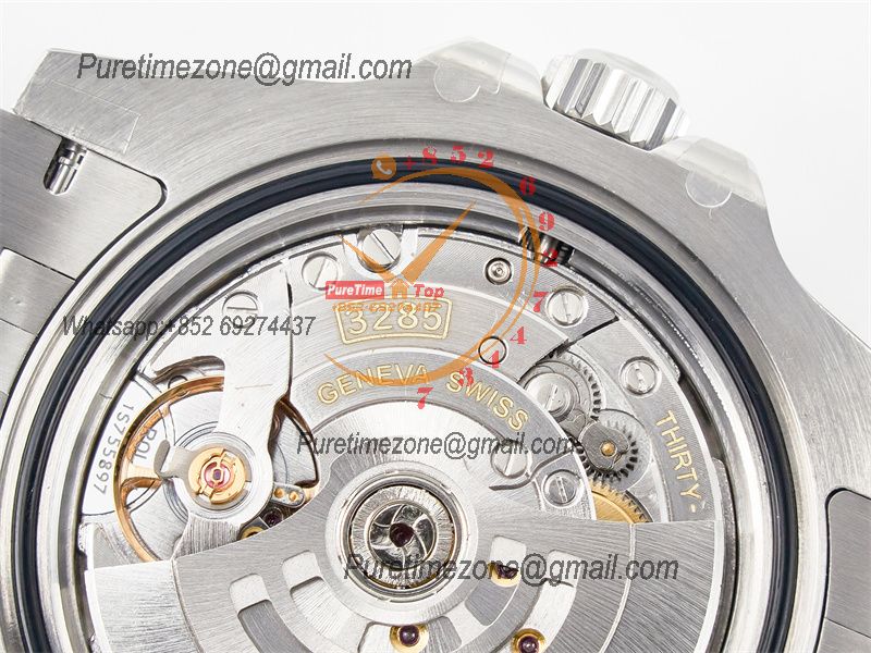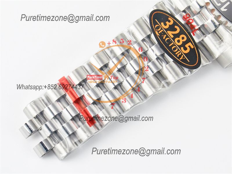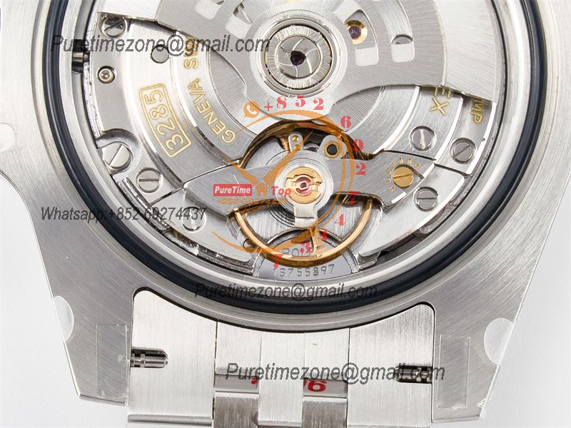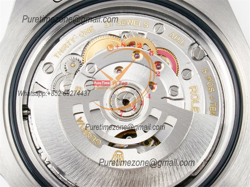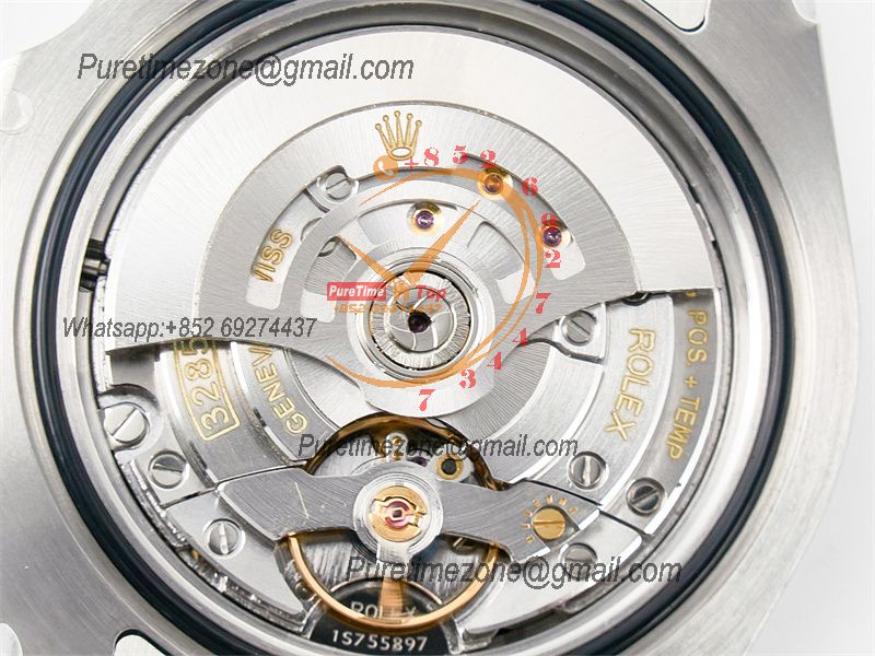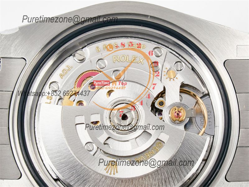 Movement:Asian Super Clone 3285 Automatic Movement at 28800 vph, Correct Handstack, self-winding, independent adjustable hour hand to set the date, same adjusting as genuine, VR3285