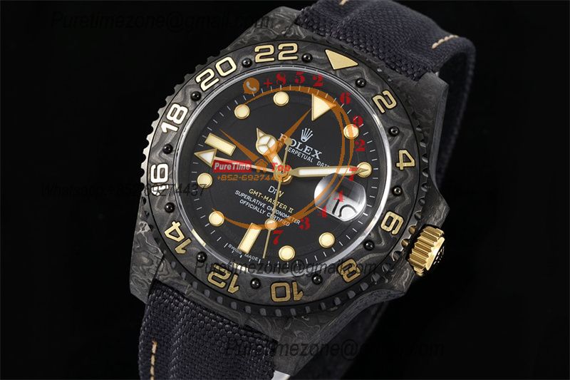 GMT Master II 126710 VR3186 Automatic Mens Watch Best Edition DIWF Carbon Case Black Dial Nylon Strap
