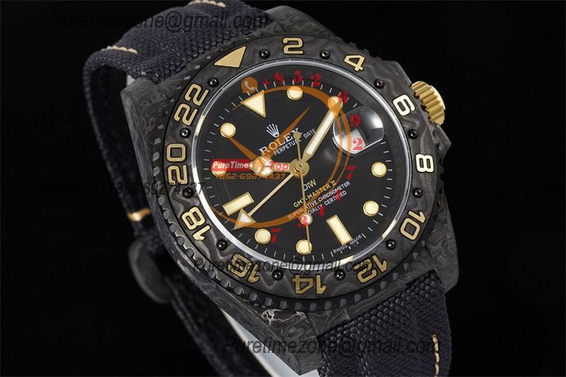GMT Master II 126710 VR3186 Automatic Mens Watch Best Edition DIWF Carbon Case All Black Dial Nylon Strap