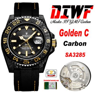 GMT Master II 126710 VR3186 Automatic Mens Watch Best Edition DIWF Carbon Case Black Dial White Nylon Strap