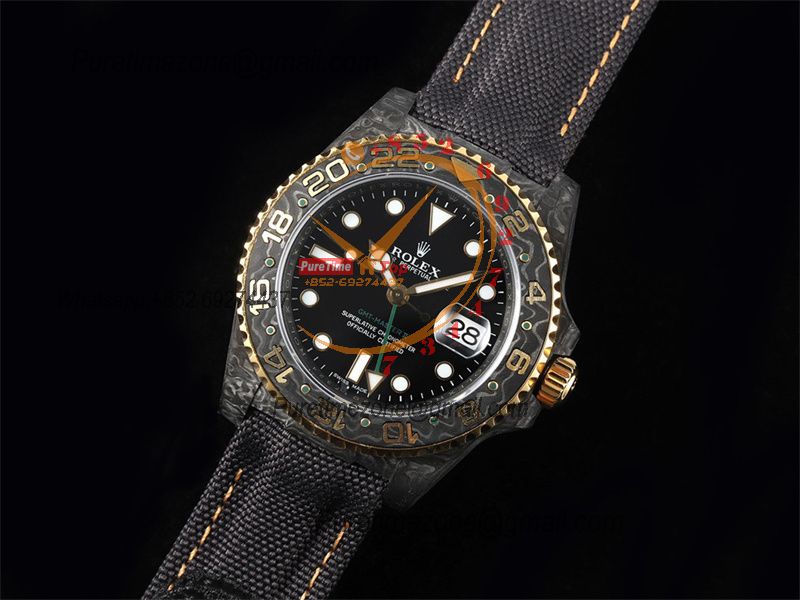 GMT Master II 126710 VR3186 Automatic Mens Watch Best Edition DIWF Carbon Case Black Dial Nylon Strap