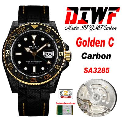 GMT Master II 126710 VR3186 Automatic Mens Watch Best Edition DIWF Carbon Case YellowDial Brown Nylon Strap