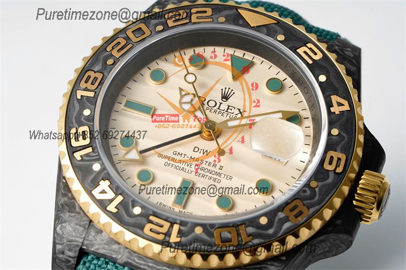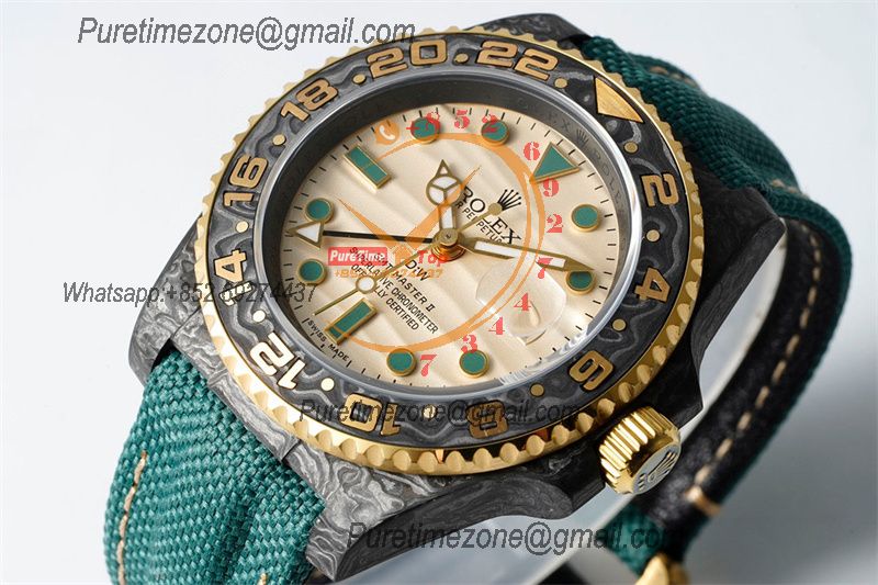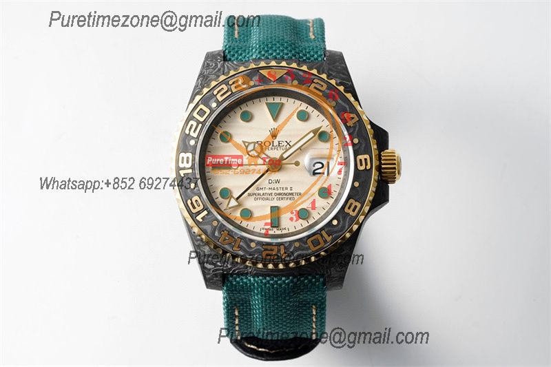 GMT Master II 126710 VR3186 Automatic Mens Watch Best Edition DIWF Carbon Case Cream Dial Brown Nylon Strap $900.00 $750.00
