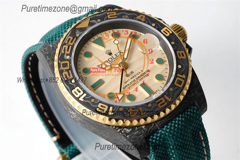 GMT Master II 126710 VR3186 Automatic Mens Watch Best Edition DIWF Carbon Case Yellow Dial Green Nylon Strap