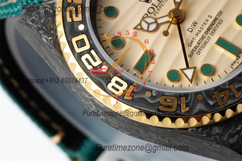 Home Rolex GMT-Master II GMT Master II 126710 VR3186 Automatic Mens Watch Best Edition DIWF Carbon Case Yellow Dial Green Nylon Strap