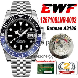 EWF GMT-Master II 126710 A3186 Automatic Mens Watch Batman Black Dial 904L Steel Jubilee Bracelet Best Edition