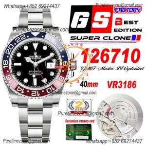 GMT Master II 126710 Pepsi VR3186 Automatic Mens Watch Best Edition GSF Red/Blue Ceramic Black Dial 904L Oyster Bracelet