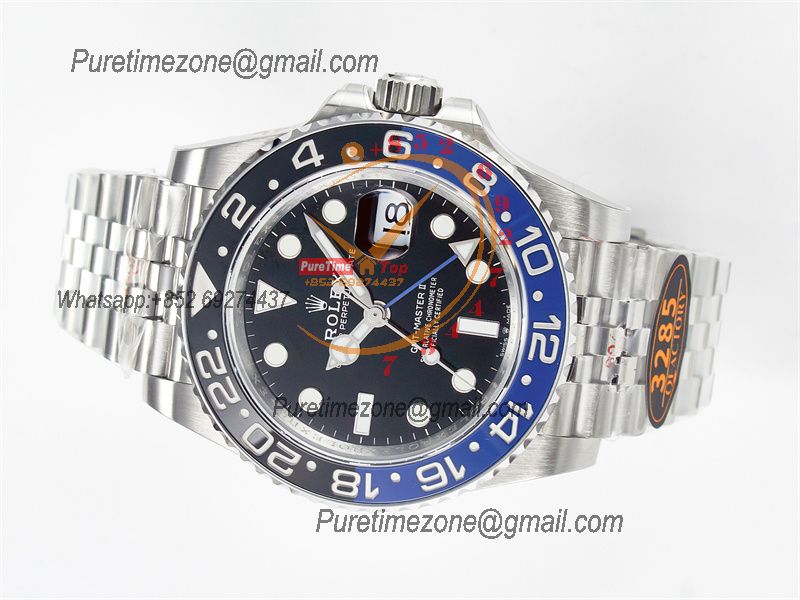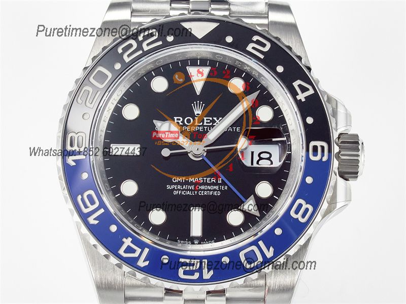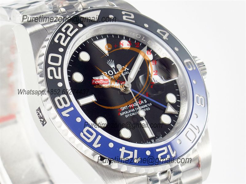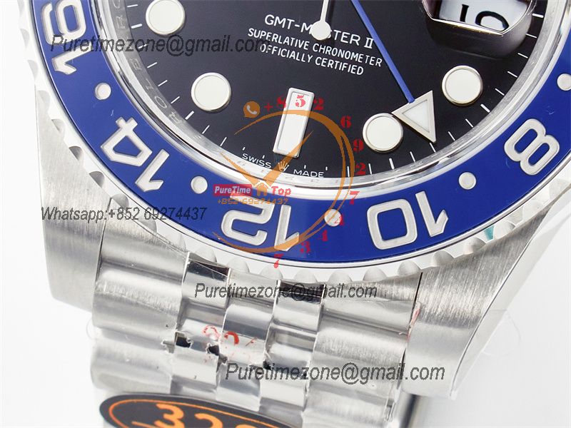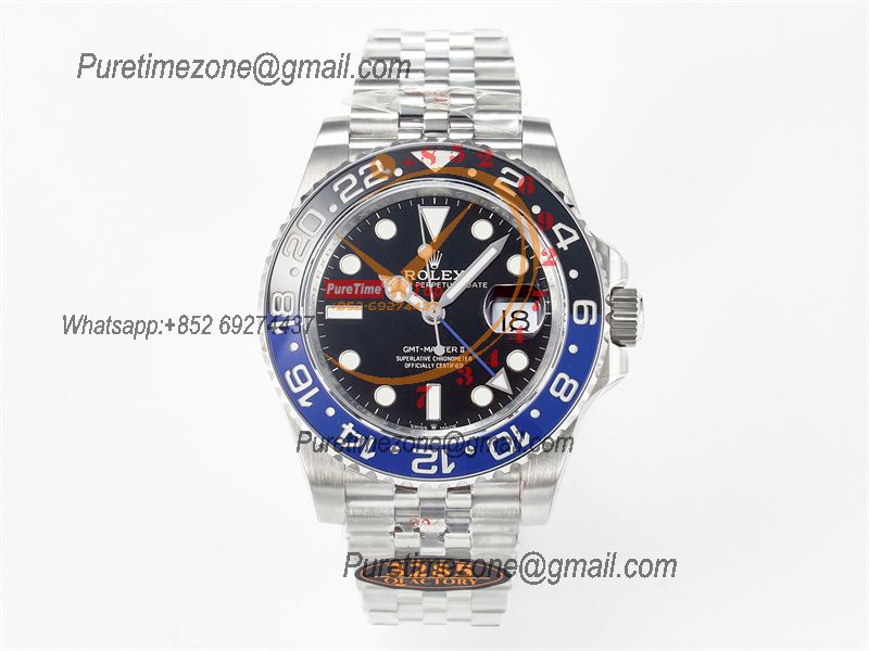 GMT Master II 116710 Batman VR3186 Automatic Mens Watch Best Edition GSF Black/Blue Ceramic 904L SS Oyster Bracelet