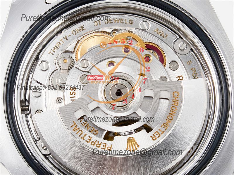 Movement:Asian Super Clone VR 3285 Automatic Movement at 28800 vph, Correct Handstack, self-winding, independent adjustable hour hand to set the date, same adjusting as genuine