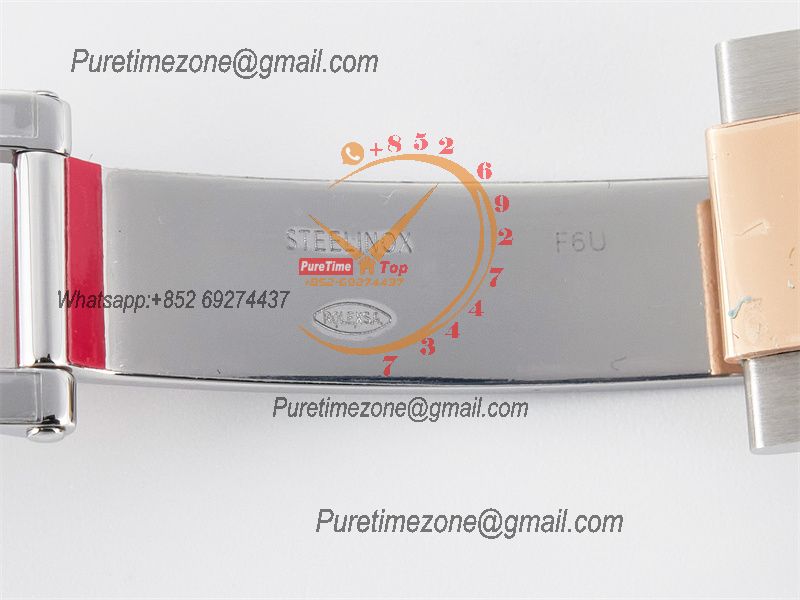 Strap:Stainless steel bracelet with 18k rose gold plated middle links