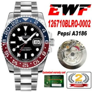 EWF GMT-Master II 126710 A3186 Automatic Mens Watch Pepsi Black Dial 904L Steel Oyster Bracelet Best Edition