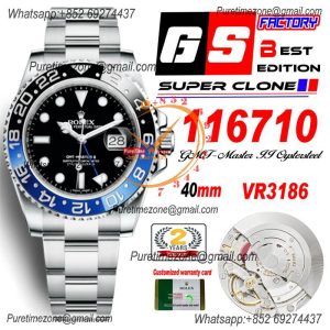 GMT Master II 116710 Batman VR3186 Automatic Mens Watch Best Edition GSF Black/Blue Ceramic 904L SS Oyster Bracelet