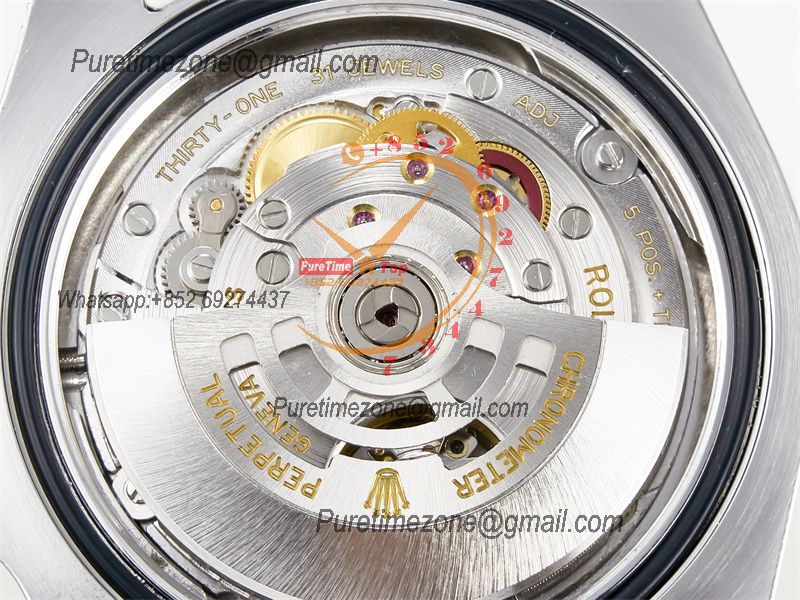 Movement:Asian Super Clone VR 3285 Automatic Movement at 28800 vph, Correct Handstack, self-winding, independent adjustable hour hand to set the date, same adjusting as genuine