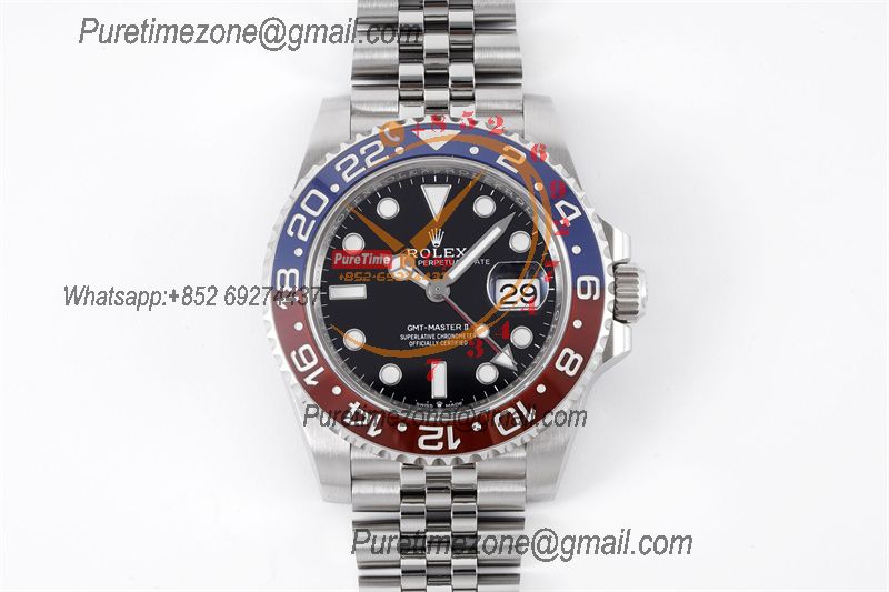 GMT Master II 126710 Pepsi VR3186 Automatic Mens Watch Best Edition GSF Red/Blue Ceramic Black Dial 904L Oyster Bracelet