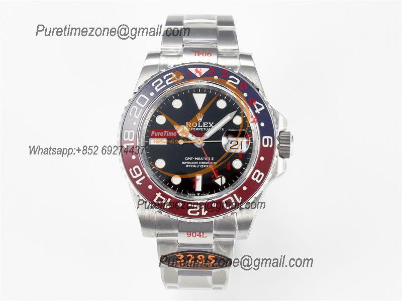 GMT Master II 126720 Pepsi VR3285 Automatic Mens Watch Best Edition QF V3 Black Dial 904L Oyster Steel Bracelet CHS