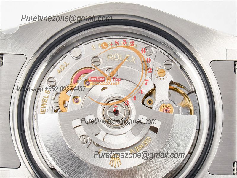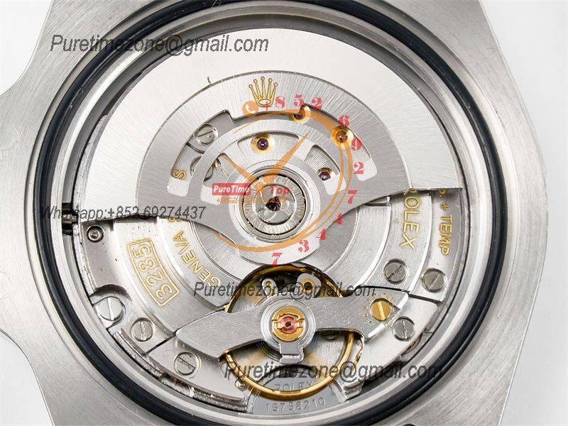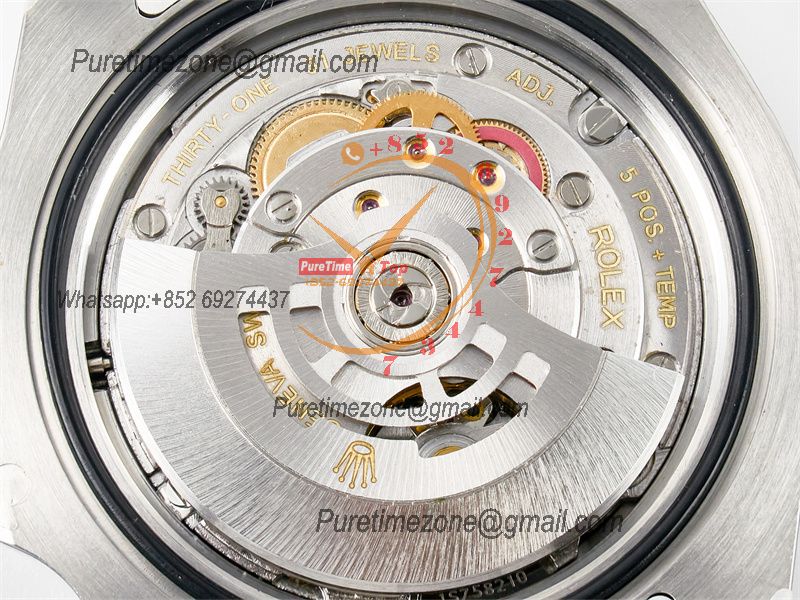 Movement:Asian Super Clone 3285 Automatic Movement at 28800 vph, Correct Handstack, self-winding, independent adjustable hour hand to set the date, same adjusting as genuine, VR3285