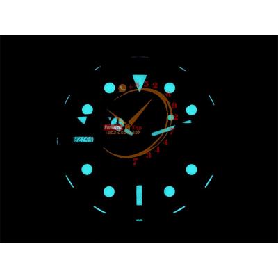 Crystal:Scratch-proof sapphire crystal with semi-invisible crown etched at 6:00 position of the crystal