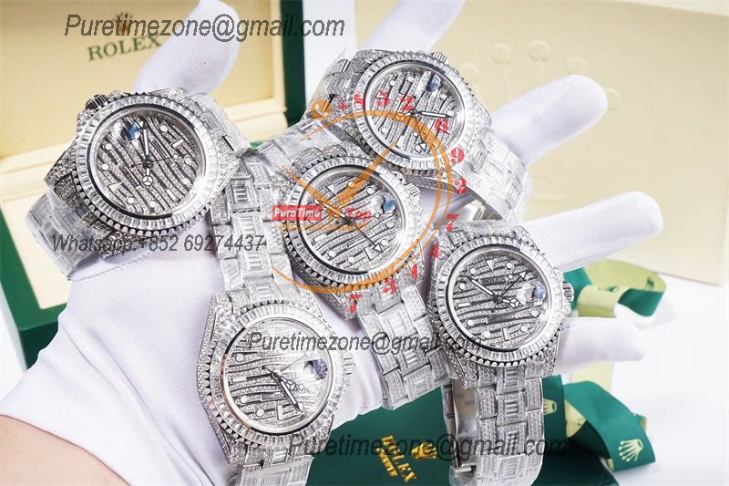 Datejust A2824 Automatic Mens Watch 41 Best Edition RRF Gray Diamond Paved Diamonds Fully Iced Out 904L Steel Bracelet