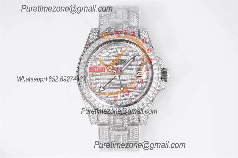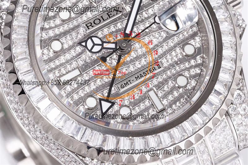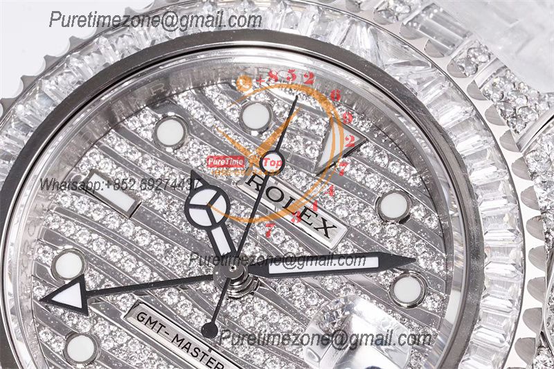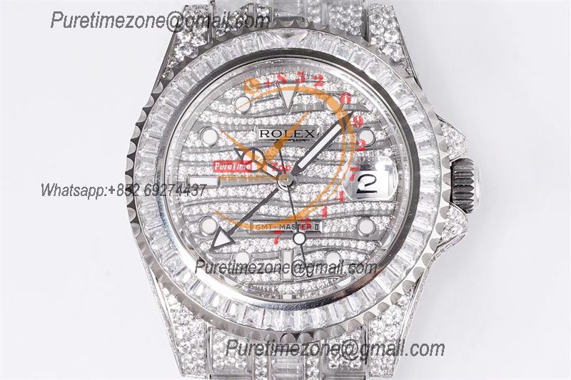 GMT Master II A2836 Automatic Mens Watch Best Edition RRF 40 RG Full Paved Diamonds Dial Ice Out 904L Steel Bracelet $780.00 $650.00