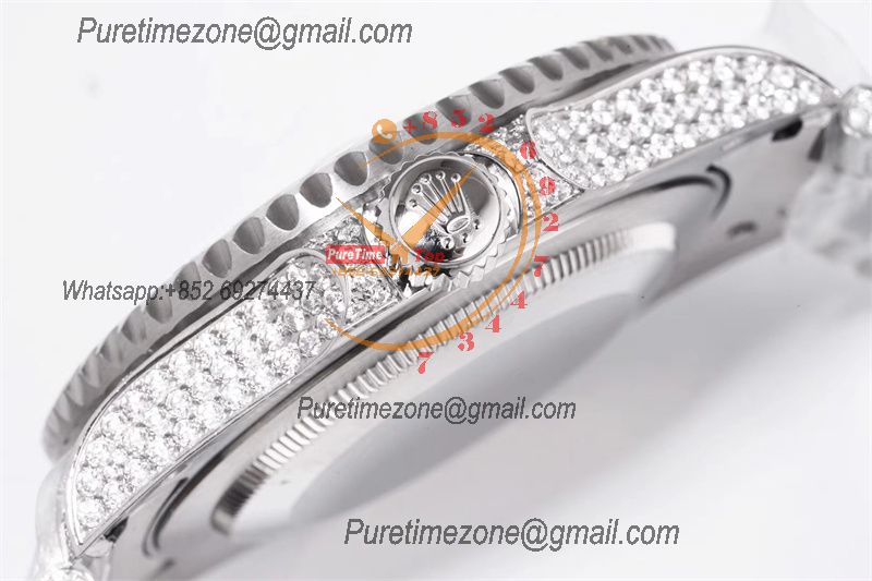 Home Rolex Iced Out GMT Master II A2836 Automatic Mens Watch Best Edition RRF 40 Full Paved Diamonds Dial Ice Out 904L Steel Bracelet