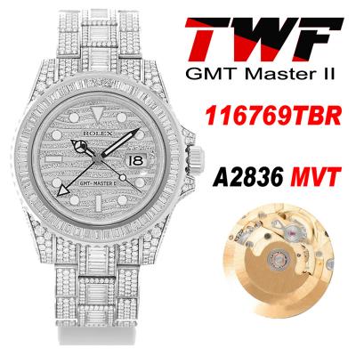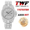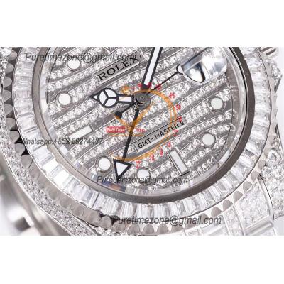 GMT Master II A2836 Automatic Mens Watch Best Edition RRF 40 Full Paved Diamonds Dial Ice Out 904L Steel Bracelet