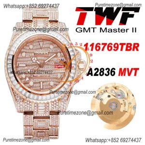 GMT Master II A2836 Automatic Mens Watch Best Edition RRF 40 RG Full Paved Diamonds Dial Ice Out 904L Steel Bracelet $780.00 $650.00