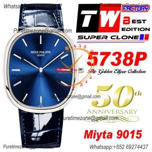 Home Patek Philippe Golden Ellipse Golden Ellipse 5738P Miyota 9015 Automatic Mens Watch Best Edition TWF Steel Case White Dial Black Leather Strap CHS