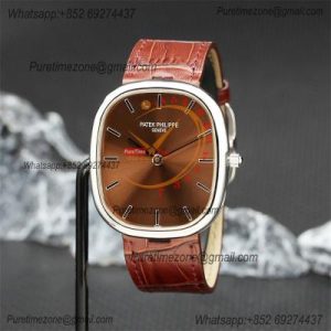 Golden Ellipse 5738P Miyota 9015 Automatic Mens Watch Best Edition TWF Steel Ebony Brown Sunburst Dial Leather Strap CHS