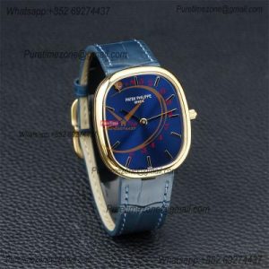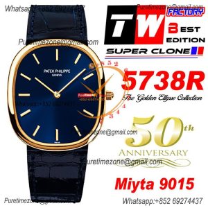 Golden Ellipse 5738R Miyota 9015 Automatic Mens Watch Best Edition TWF Yellow Gold Blue Dial Leather Strap CHS
