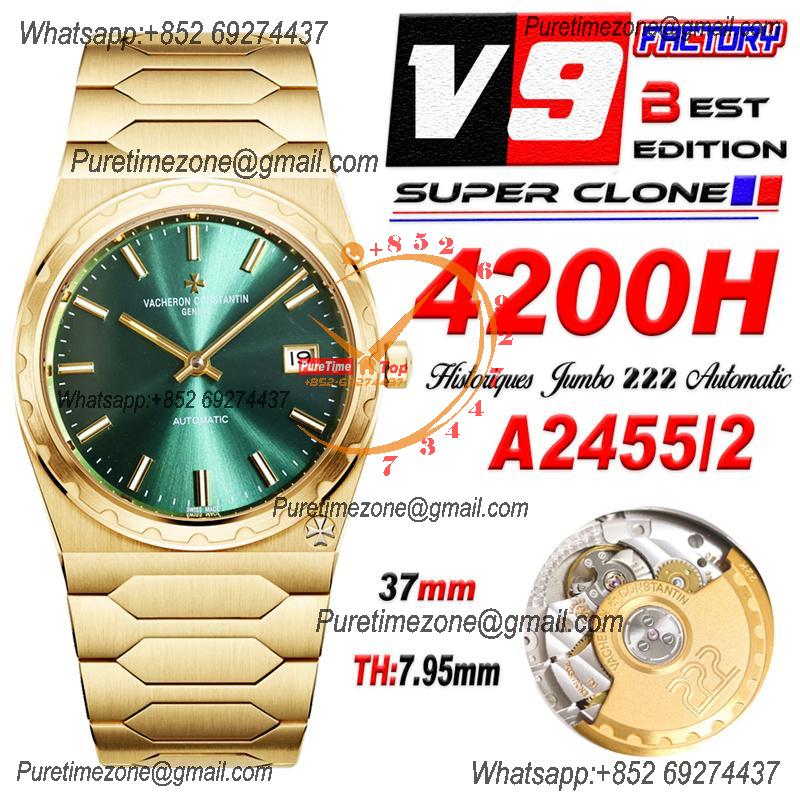 Historiques 4200H 222 Jumbo A2455 Automatic Mens Womens Unisex Watch Best Edition V9F YG Green Dial CHS