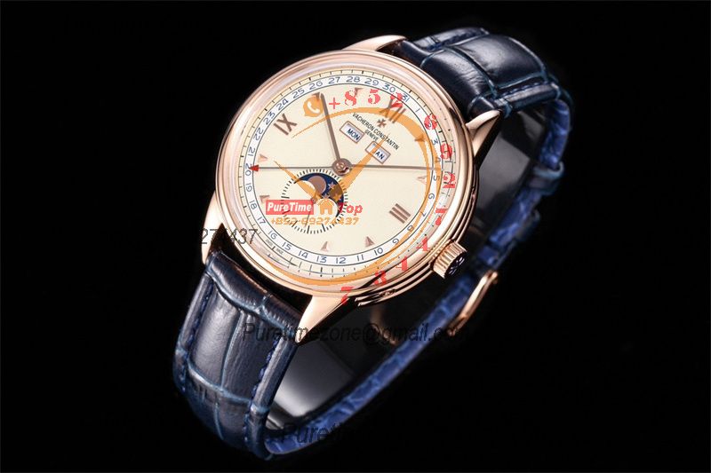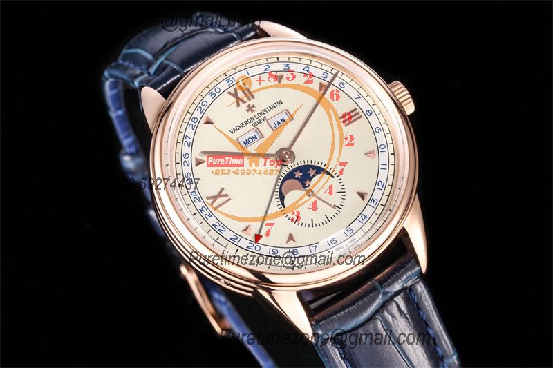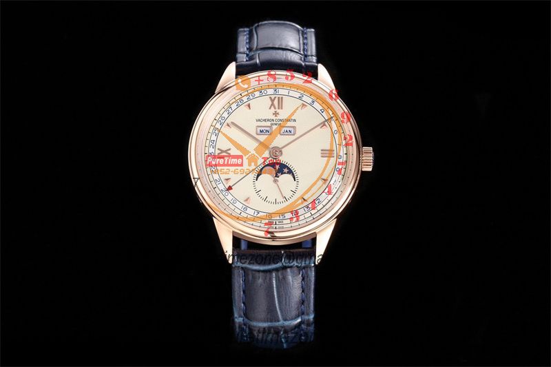 Overseas Perpetual Calendar Moonphase43200V A1120 Automatic Mens Watch Best Edition TWF RG Blue Dial Rubber CHS