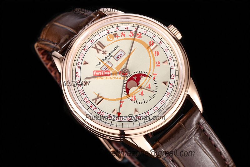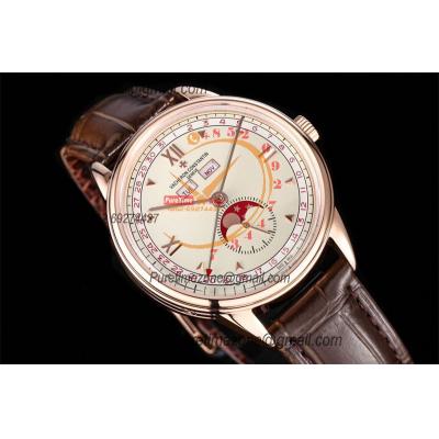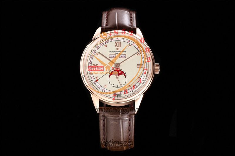 Home Vacheron Constantin Traditionnelle Historiques Triple Calendrier 3100V A4400 Automatic Mens Watch Best Edition Moon Phase TWF 40 RG White Dial Leahter CHS