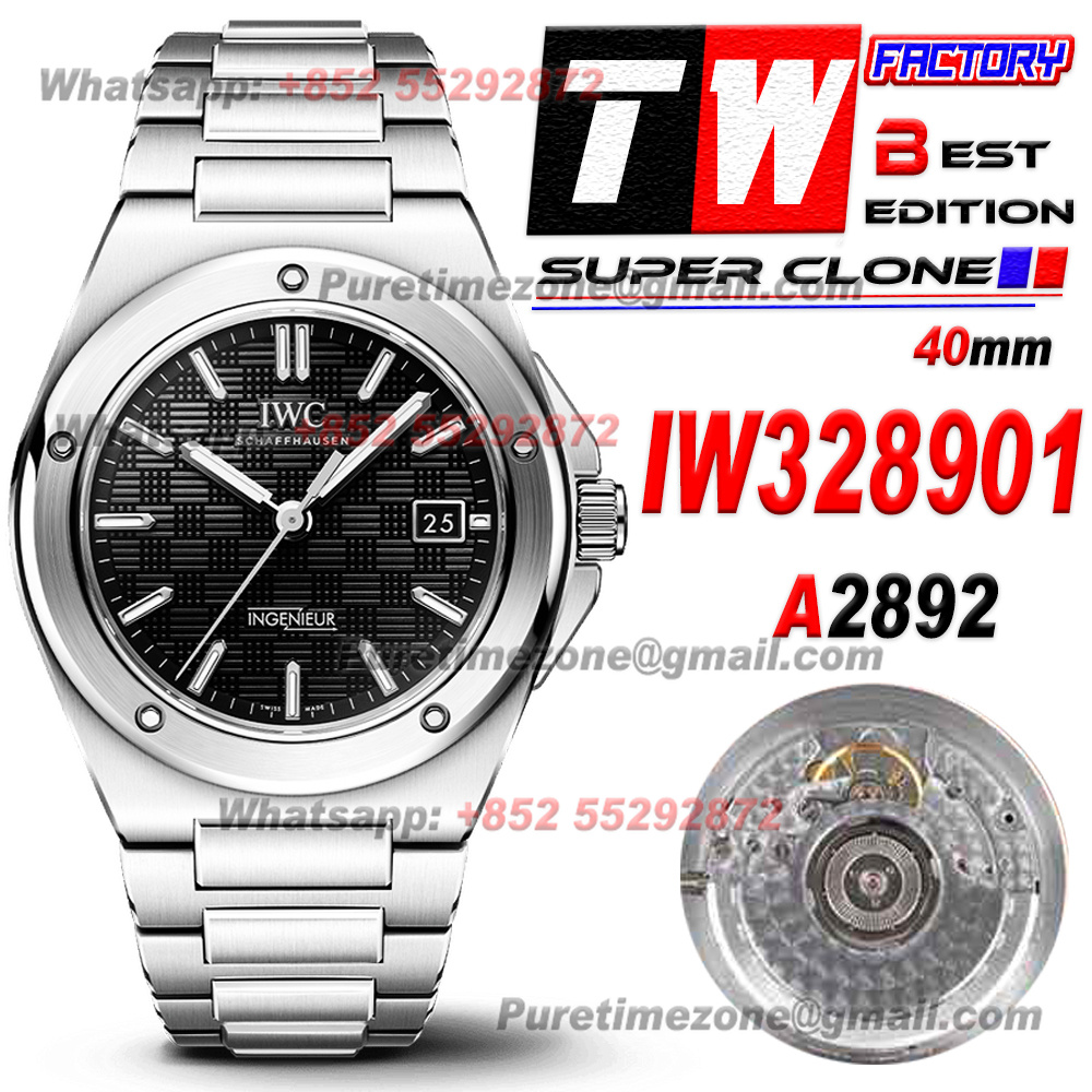 Home IWC Ingenieur Ingenieur IW328901 Automatic Mens Watch Super Clone TWF 40 Black Dial SS Bracelet A2892