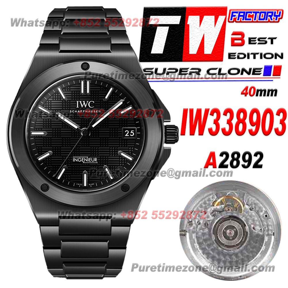 Ingenieur IW328908 Automatic Mens Watch Super Clone TWF 40 DLC All Black Dial SS Bracelet A2892