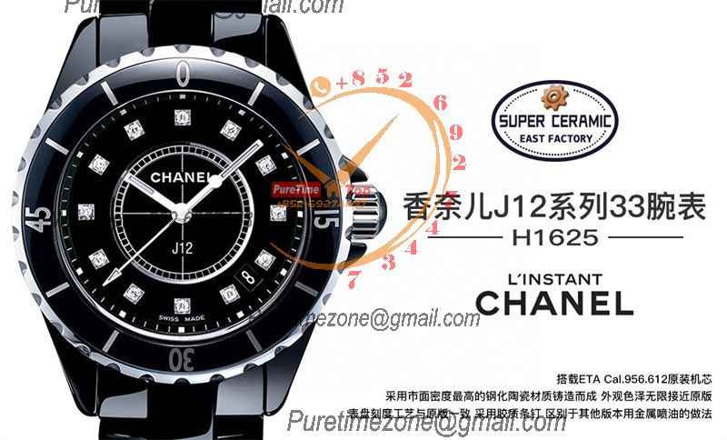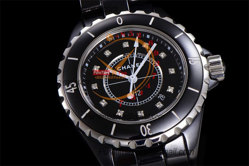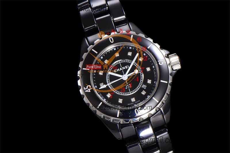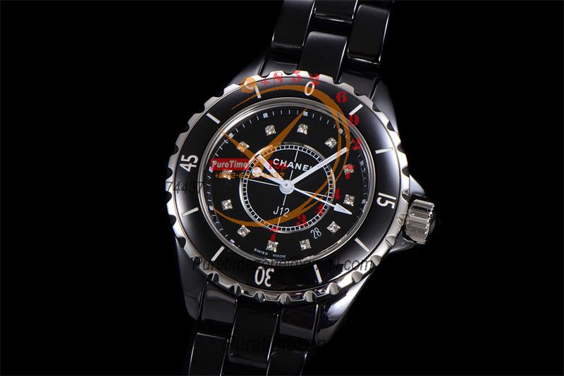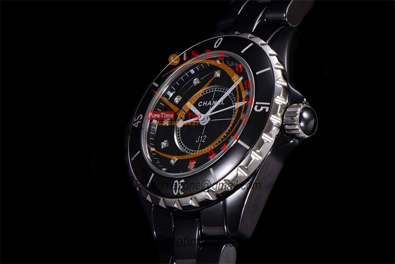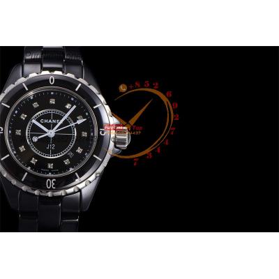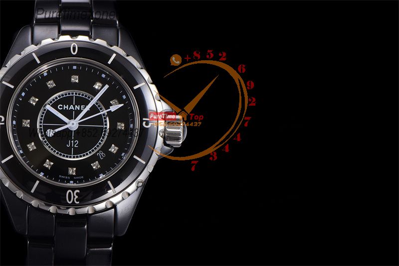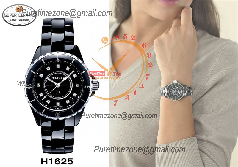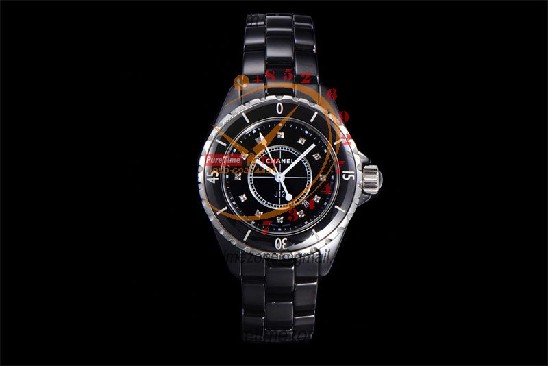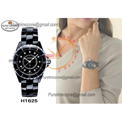 Home Chanel J12 H1625 33mm Swiss Quartz Womens Watch Best Edition EAST Black Korea Ceramic Black Diamond Dial on Bracelet