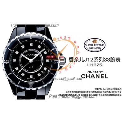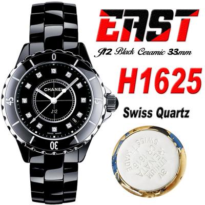 J12 H1625 33mm Swiss Quartz Womens Watch Best Edition EAST Black Korea Ceramic Black Diamond Dial on Bracelet
