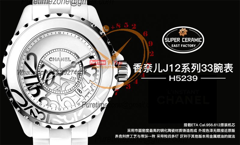 Home Chanel J12 H5239 33mm Swiss Quartz Womens Watch Best Edition EAST White Korea Ceramic White Dial on Bracelet