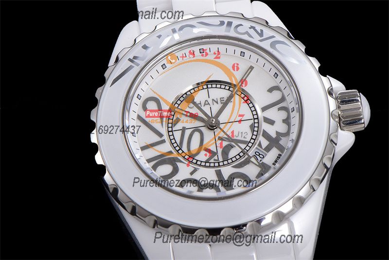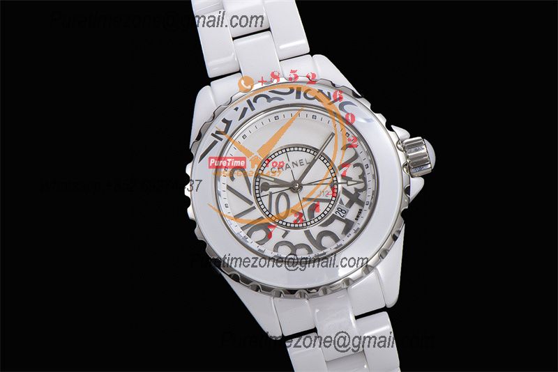 J12 H0968 33mm Swiss Quartz Womens Watch Best Edition EAST White Korea Ceramic White Dial on Bracelet