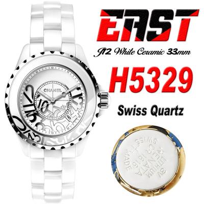 J12 H5239 33mm Swiss Quartz Womens Watch Best Edition EAST White Korea Ceramic White Dial on Bracelet