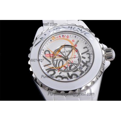 J12 H5582 38mm A2892 Automatic Unisex Watch Best Edition EAST White Ceramic Stripe Dial on Bracelet CHS Womens