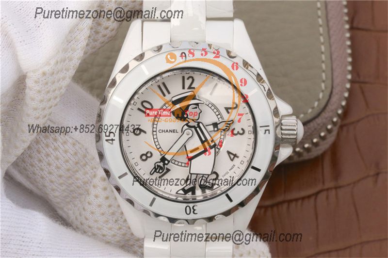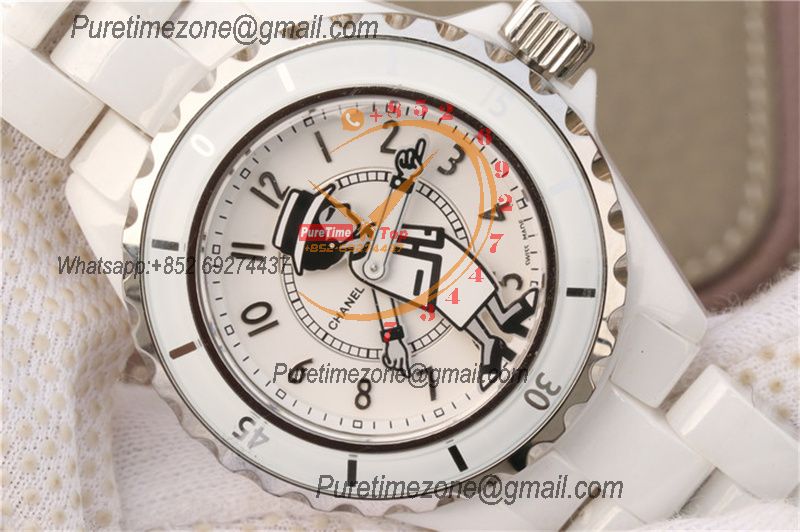 Home Chanel J12 H5241 38mm A2892 Automatic Unisex Watch Best Edition KORF Whimsical Mademoiselle “Party” White Ceramic