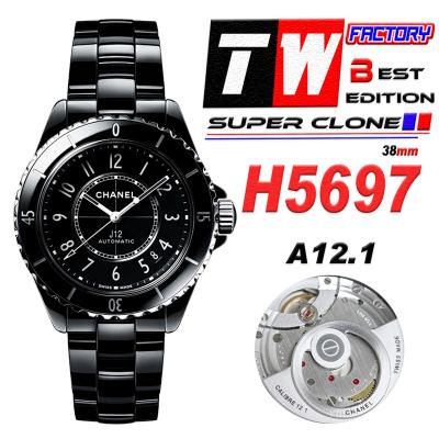 J12 H5697 38mm A12.1 Automatic Unisex Watch Best Edition TWF Black Ceramic Dial on Bracelet CHS Womens