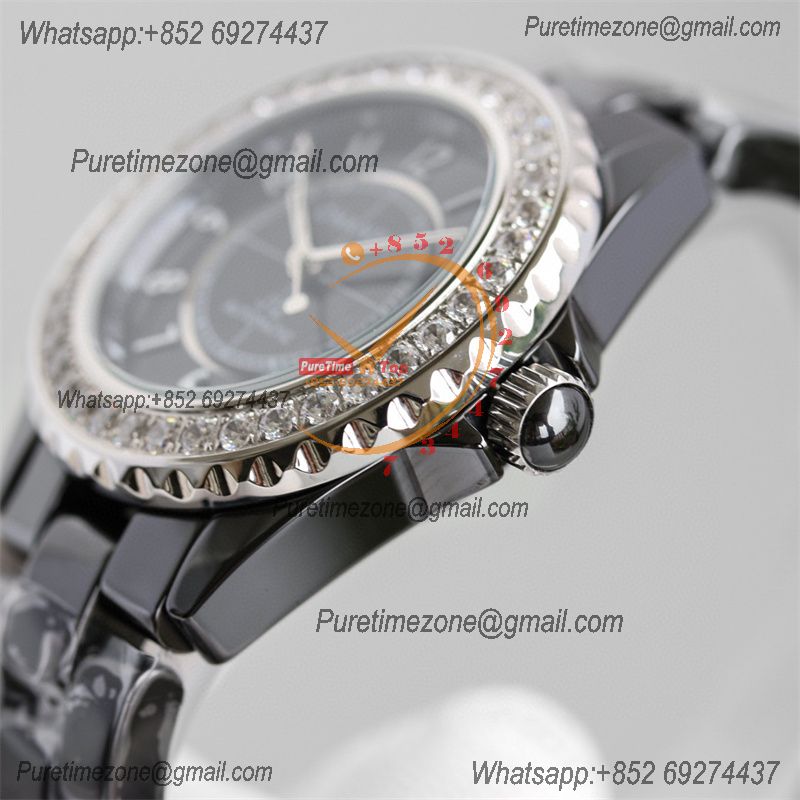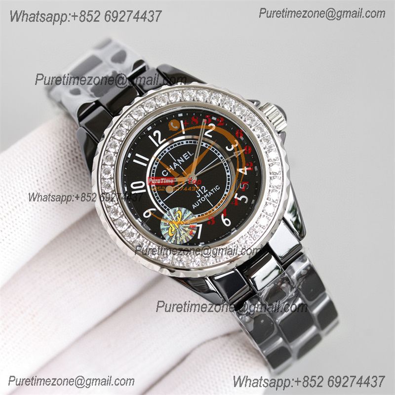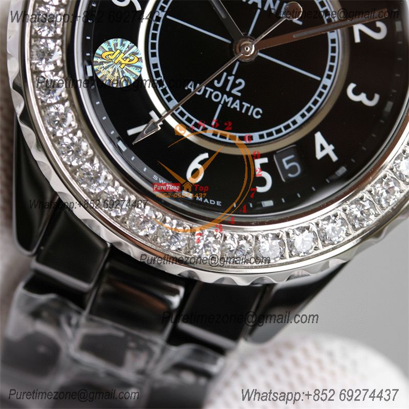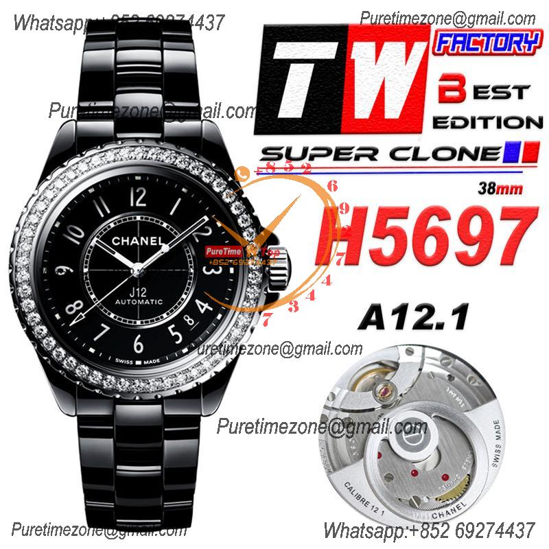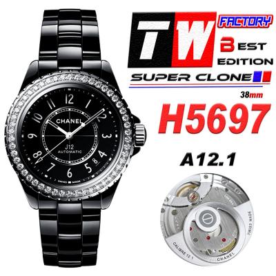 J12 H5697 38mm A12.1 Automatic Unisex Watch Best Edition TWF Diamond Bezel Black Ceramic Dial on Bracelet CHS Womens
