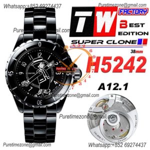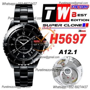 J12 H5697 38mm A12.1 Automatic Unisex Watch Best Edition TWF Black Ceramic Dial on Bracelet CHS Womens $660.00 $550.00