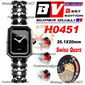 Premiere H0451 Swiss Quartz Womens Watch Best Edition BVF Steel Case Black Dial Interwoven Leahter Strap Ladies