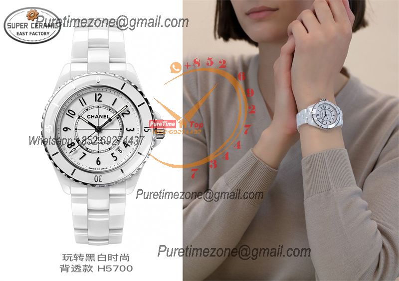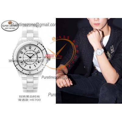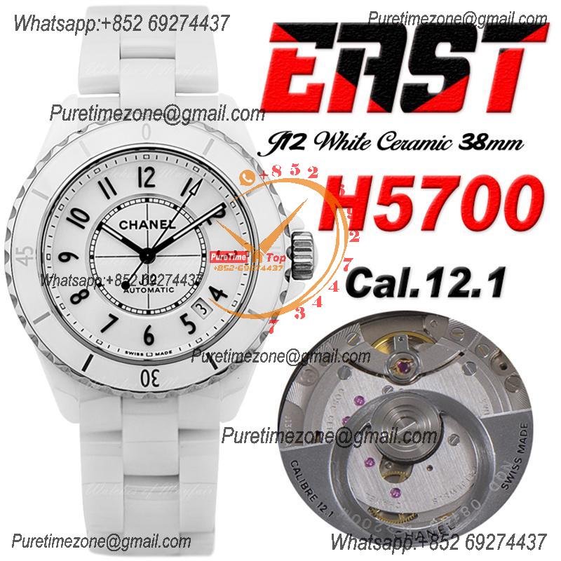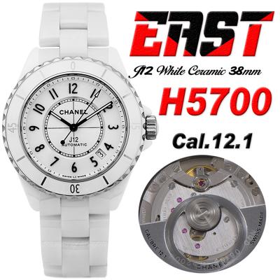 J12 H5705 38mm A12.1 Automatic Unisex Watch Best Edition EAST White Ceramic White Dial on Bracelet CHS Womens