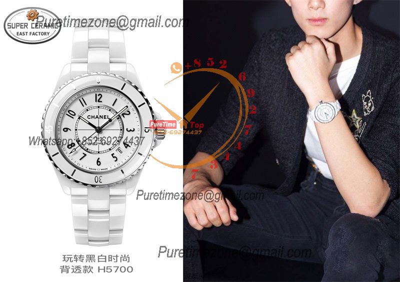 Home Chanel J12 H5705 38mm A12.1 Automatic Unisex Watch Best Edition EAST White Ceramic White Dial on Bracelet CHS Womens