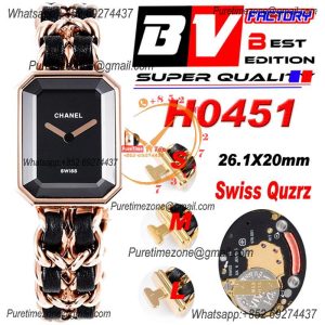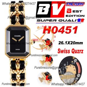 Premiere H0451 Swiss Quartz Womens Watch Best Edition BVF Steel Case Black Dial Interwoven Leahter Strap Ladies